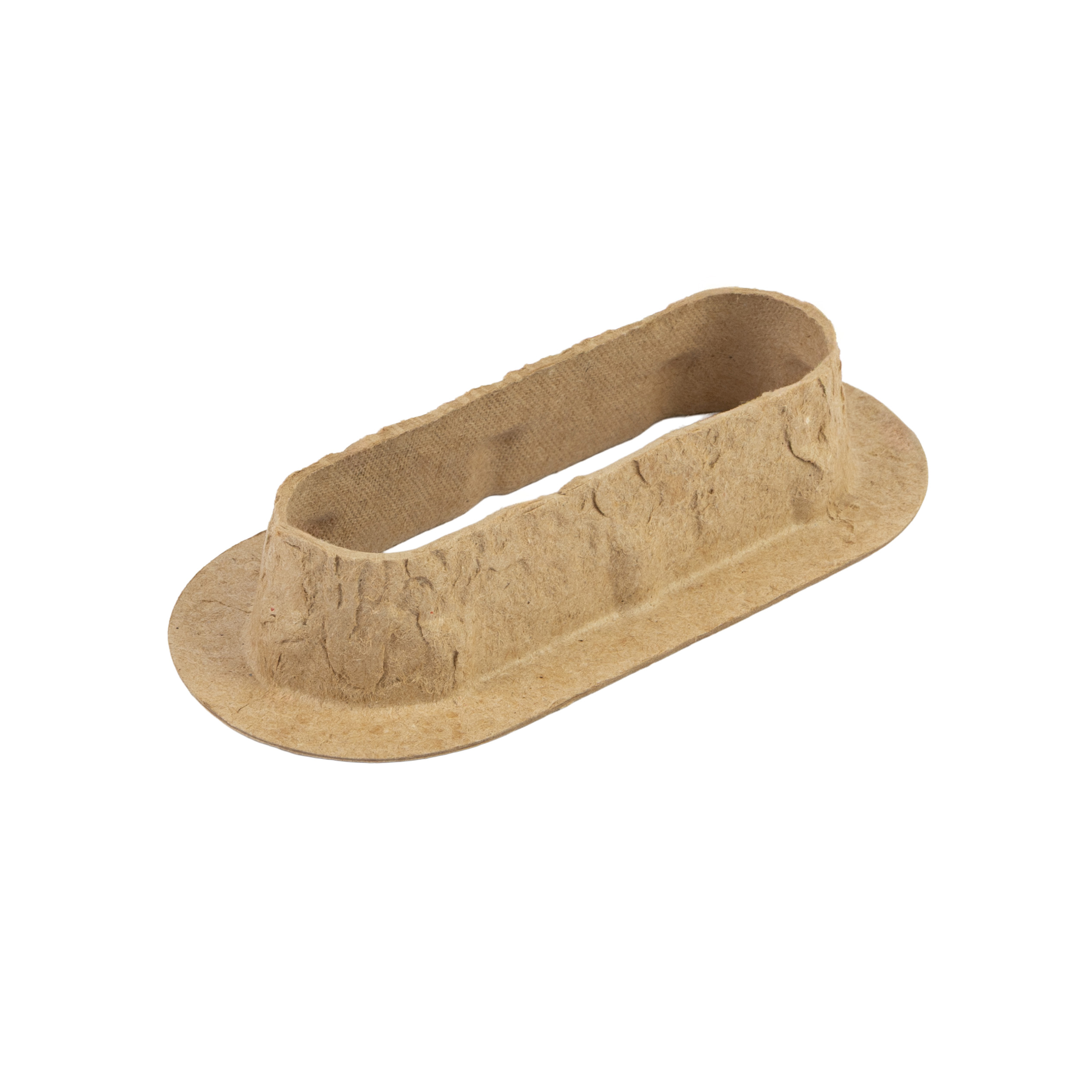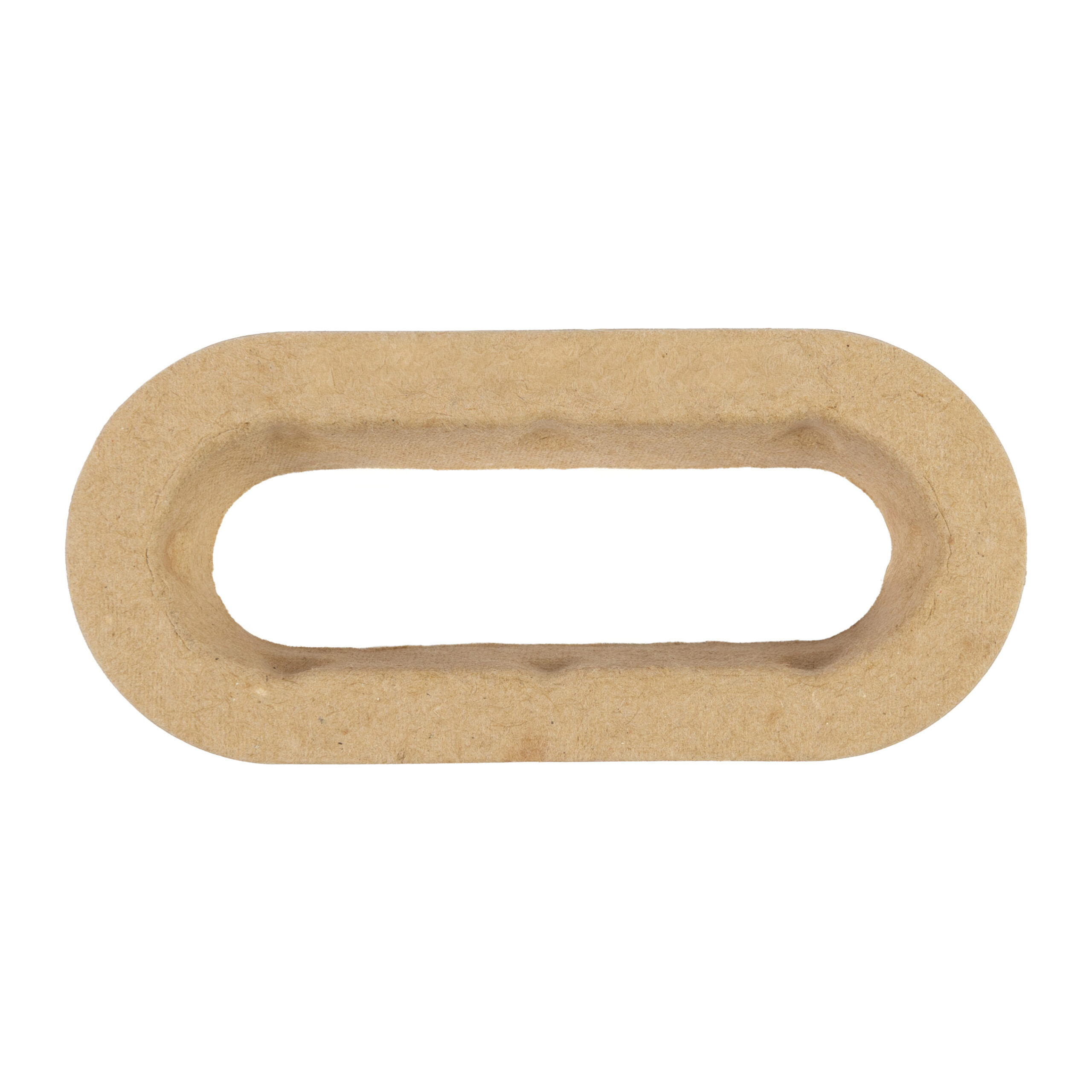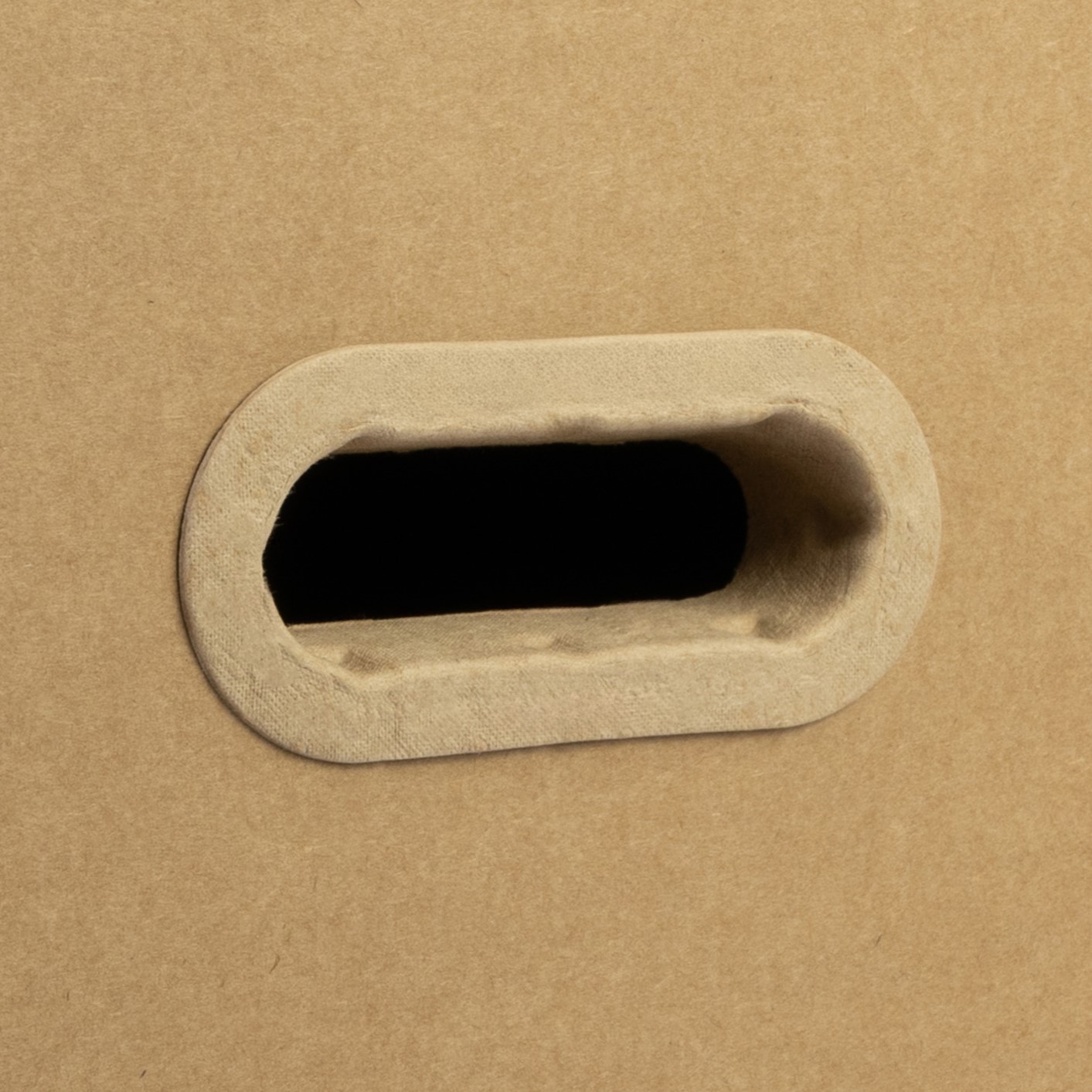 Una maniglia sostenibile, realizzata in fibra modellata proveniente al 100% da materiale riciclato, progettata per rafforzare le aperture a presa fustellate e prevenire la rottura delle scatole sotto carichi pesanti o in caso di utilizzi ripetuti.